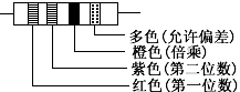 2)精密度电阻器的色环标志用五个色环表示。第一至第3色环表示电阻的有效数字,第4色环表示倍乘数,第5色环表示容许偏差,图2的电阻为17.5Ω±1%